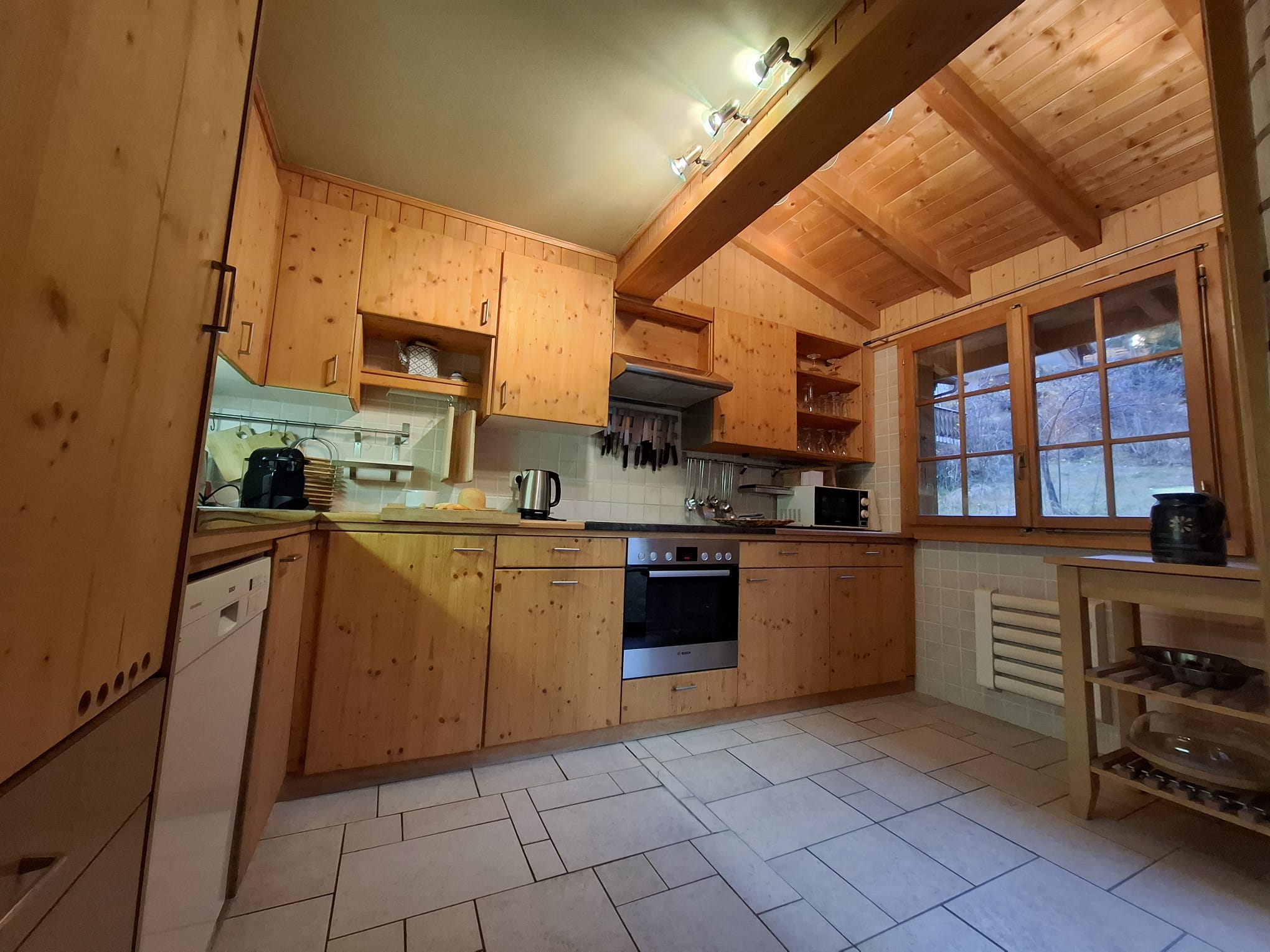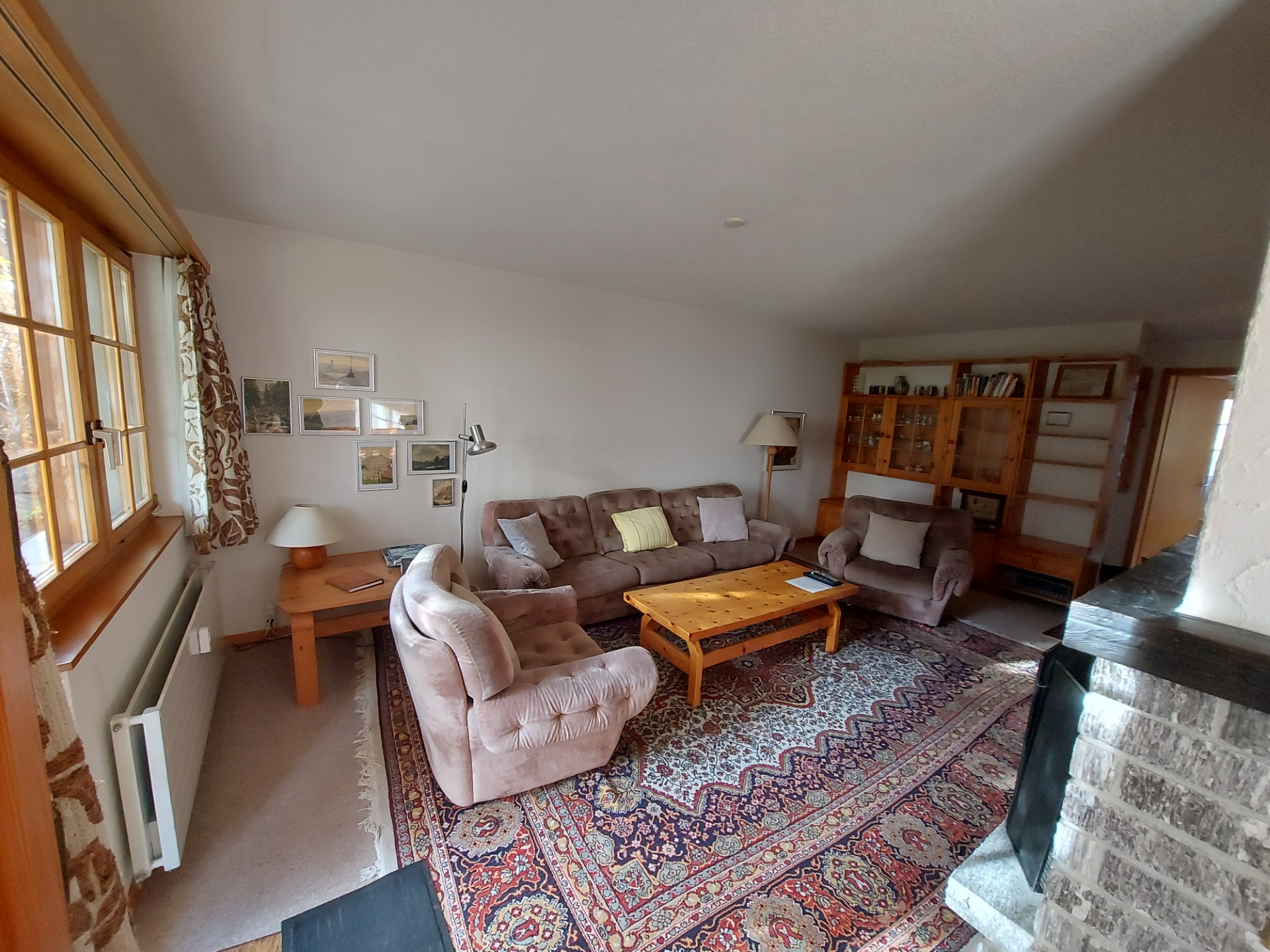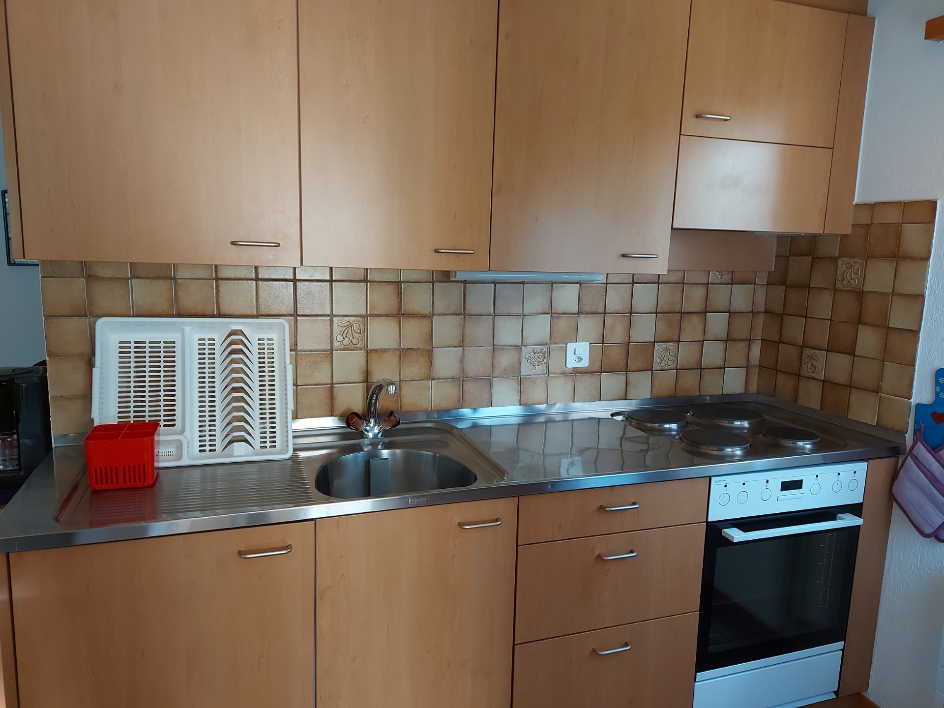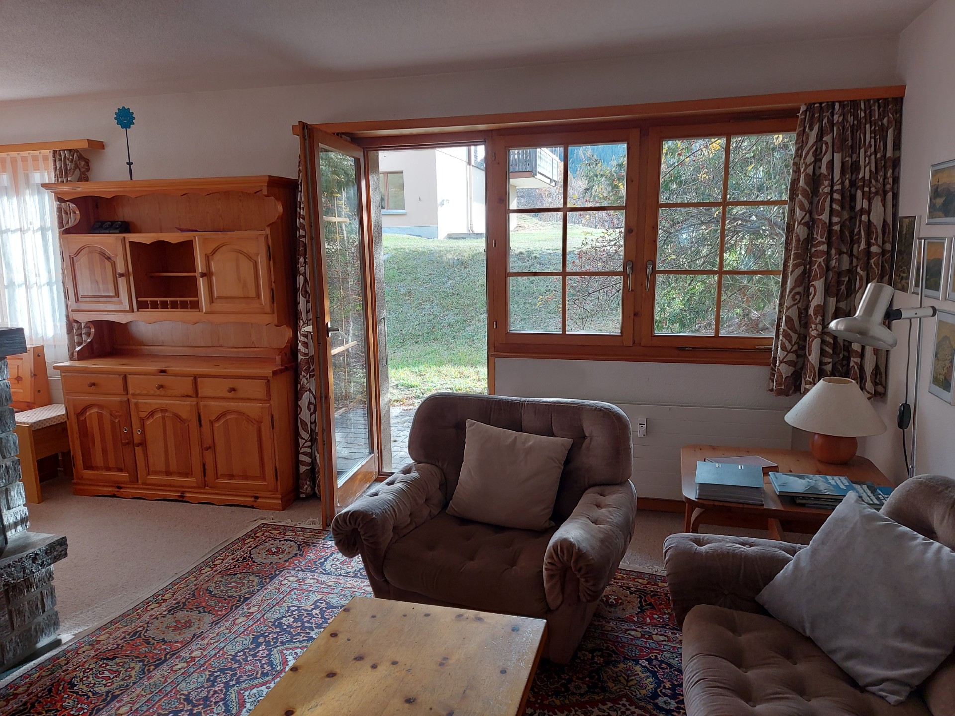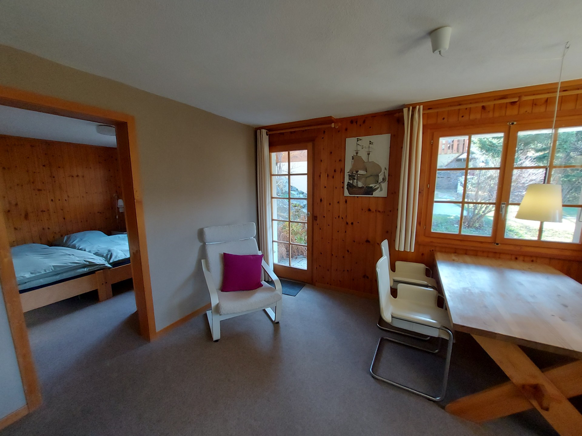 In der hellen 3 1/2- Zi. Wohnung im Parterre können Sie sich so richtig entspannen, die Seele baumeln lassen. Großzügiges Wohn- Esszimmer, gemütliche Couchgarnitur und Essecke zum Wohlfühlen, TV. Offener Küchenbereich (Kühlschrank, Elektroherd + Backofen, Abzugshaube). 1 großes Schlafzimmer mit Doppelbett, 1 Schlafzimmer mit Doppelhochbett und 1 Einzelbett. Bad mit WC.